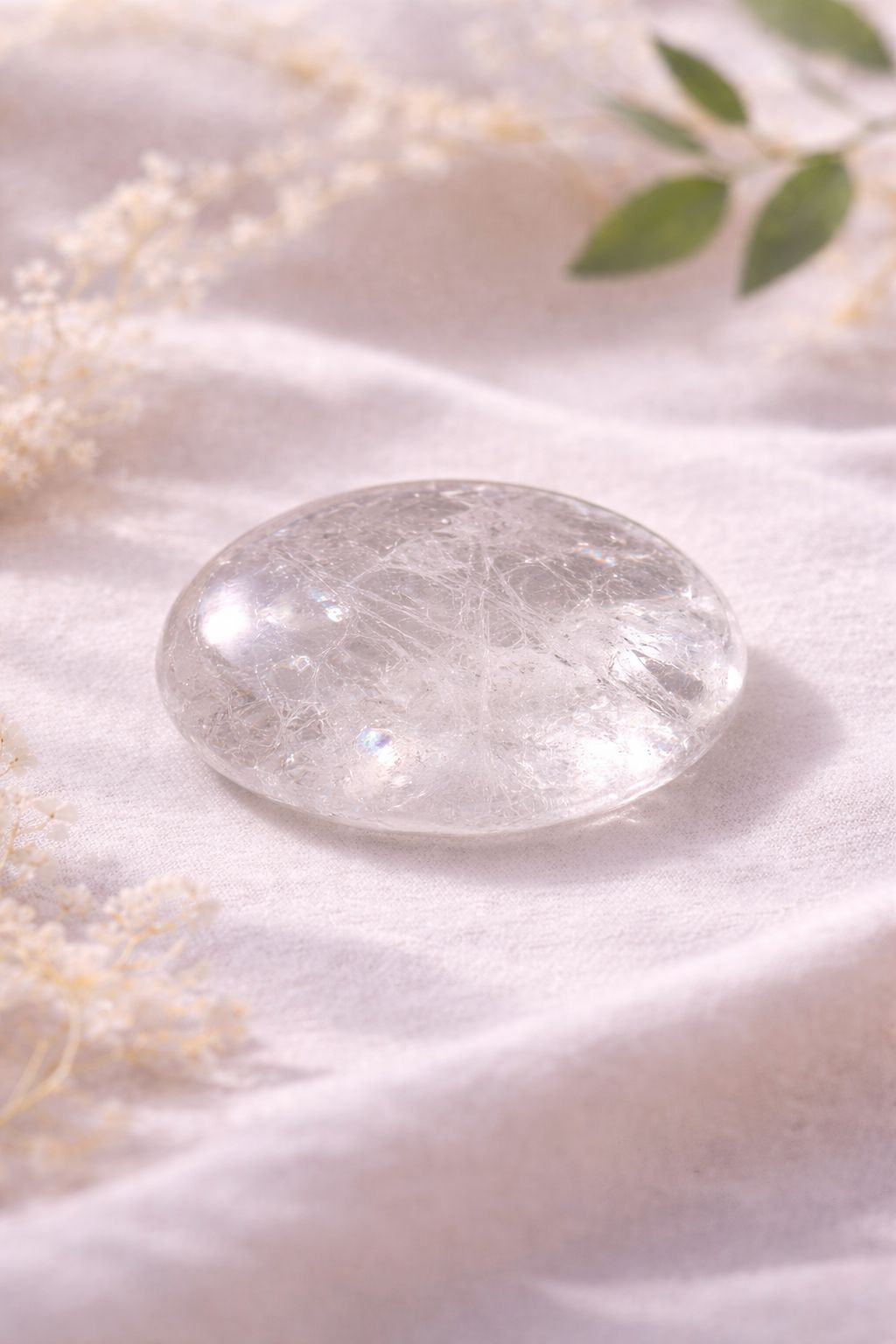 Le galet en cristal de roche agit comme un amplificateur énergétique, apportant clarté, équilibre et élévation